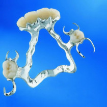 Die Modellgussprothese ist die Standardversorgung bei teilweisem Zahnverlust. Diese Teilprothese ist ein abnehmbarer Zahnersatz, der über Klammern an den natürlichen Zähnen befestigt wird. Für den Oberkiefer gestaltet man die Basis meist als Platte und im Unterkiefer als Bügel. Zahnfleischfarbene Prothesensättel mit den Ersatzzähnen füllen die Zahnlücken aus. Um die Haltezähne greifen Klammern mit elastischen Armen, während zusätzliche Stütz- oder Auflageelemente die Prothese auf dem Restgebiss abstützen, um die Kieferkämme vom Druck der aufliegenden Prothese zu entlasten Prothesenbasis und Prothesenklammern werden meist in einem Stück aus einer Kobalt-Chrom-Molybdän-Legierung gegossen. Der Zahnersatz soll optimal sitzen. Hebelwirkungen, die die restlichen Zähne schädigen können, sind zu vermeiden. Deshalb kann es vorkommen, dass auch im sichtbaren Bereich auf Klammern nicht verzichtet werden kann.