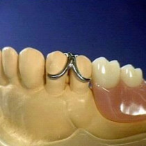 Ein weiterer Nachteil der Modellgussprothese: Die Verankerungszähne können durch die Klammern geschädigt werden. Deshalb ist ein vorheriges Überkronen der Klammerzähne ratsam. Modellgussprothesen sind leicht zu pflegen und einfach einzugliedern. Außerdem benötigen sie, wenn keine Überkronung der Haltezähne erfolgt, nur wenig Vorarbeit an den vorhandenen Zähnen.